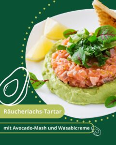 Vorspeise: Räucherlachs-Tartar mit Avocado-Mash und Wasabicreme